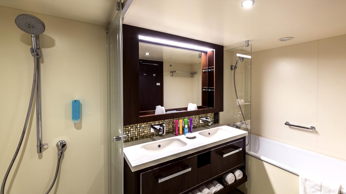 کابین Palace Deluxe Suiteمشخصات و امکانات مساحت 41 متر مربعظرفیت 4 نفرطبقه 151 تخت یک نفره + 1 کاناپه تخت خواب شو دونفره