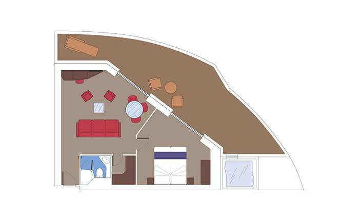 - مساحت کابین 39 و بالکن بزرگ آن حدودا 36 متر مربع با حمام چرخابی خصوصی در طبقه 12 می باشد