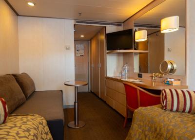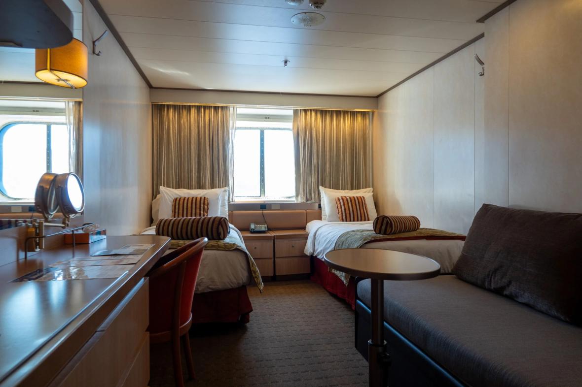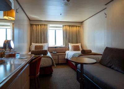 کابین های XB Exterior Cosmos Cabins در طبقه های 4 و 6 (با مساحت حدودا 19 متر مربع) با دو تخت یک نفره و یک کاناپه تخت خواب شو دونفره دارای ظرفیت حداکثری 4 نفر می باشند. حمام با وان یا دوش، تلفن، سشوار، صندوق امانات و تلویزیون از ویژگی های دیگر این کابین هستند. تخت های یک نفره در صورت درخواست امکان به هم چسبانده شدن و تبدیل شدن به تخت دونفره را دارند. اندازه و چینش کابین ها در طبقه کابین یکسان هم ممکن است که متفاوت باشد.