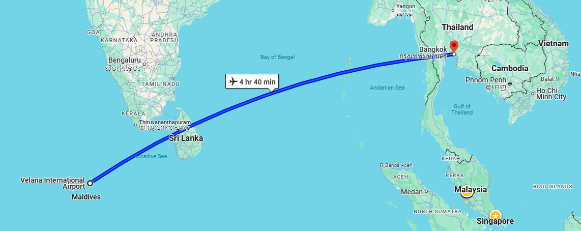 - پرواز داخلی (پوکت - بانکوک) * (بانکوک - مالدیو) * (مالدیو - کلمبو)