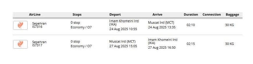 - پرواز مستقیم (تهران - مسقط - تهران)