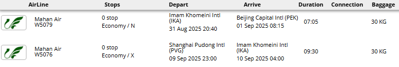 - پرواز مستقیم هواپیمایی ماهان (تهران - پکن * شانگهای - تهران)