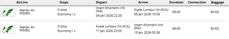 - پرواز مستقیم (تهران - کوالالامپور - تهران)