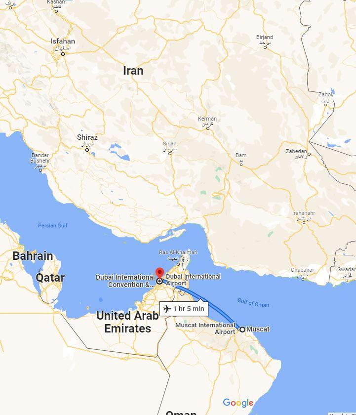 تحویل اتاق، انجام تشریفات فرودگاهی، پرواز از فرودگاه مسقط به سمت دبی (طول پرواز حدود 1 ساعت)، ورود به فرودگاه دبی، تحویل بار، تحویل اتاق در هتل، اقامت در شهر دبی
