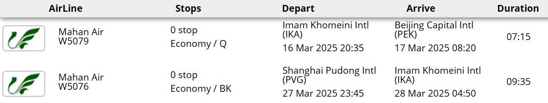 - پرواز هواپیمایی ماهان