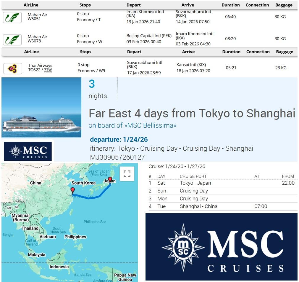 نکات و دانستنیهای تور لوکس تایلند، ژاپن، کشتی کروز MSC Bellissima ،چین؛ سفری 20 روزه میان تاریخ، تکنولوژی و درخشش اقیانوس ها زمستان 1404
