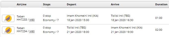 - پرواز رفت و برگشت تهران به تفلیس