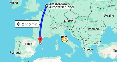 - پرواز داخلی (بارسلون - آمستردام)