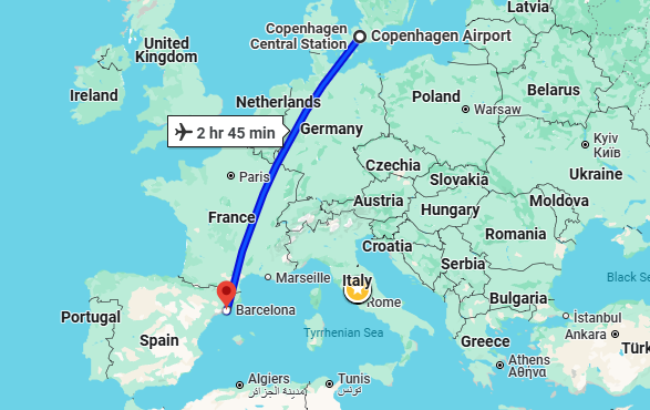 - پرواز داخلی (بارسلون - کپنهاگ)