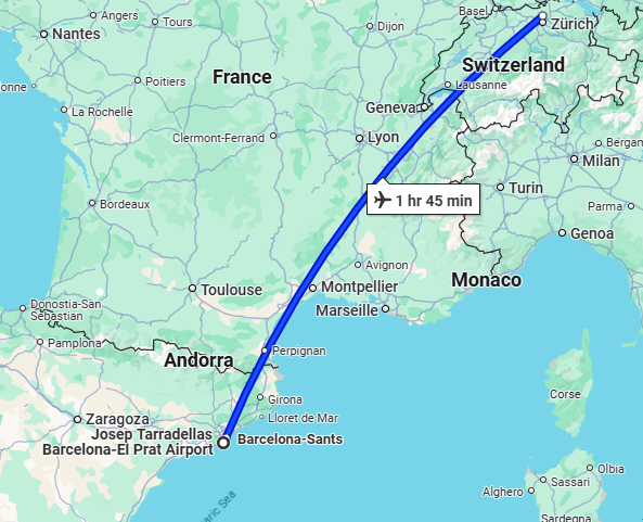 - پرواز داخلی (بارسلون - زوریخ)