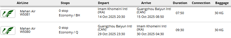 - پرواز مستقیم هواپیمایی ماهان (تهران - گوانجو - تهران)