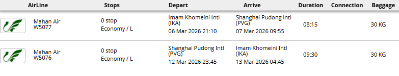 - پرواز مستقیم هواپیمایی ماهان