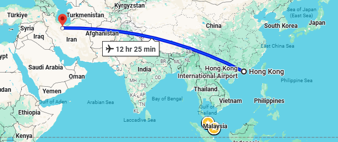 - پرواز (تهران - هنگ کنگ - تهران) با توجه به ایرلاین با یک توقف در استانبول، دوحه یا دبی