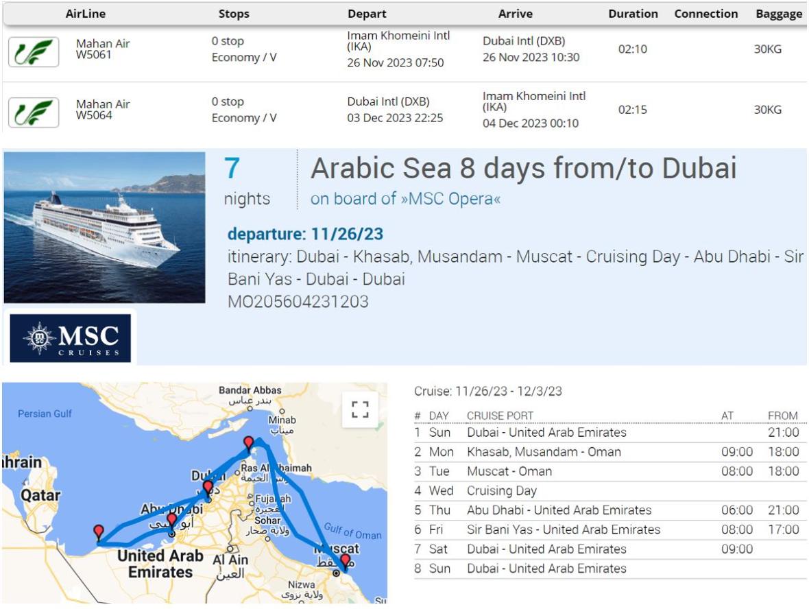 برنامه سفر تور کشتی کروز 8روز MSC Opera : سواحل جنوبی خلیج فارس در سواحل کشور امارات و عمان نوروز 1403