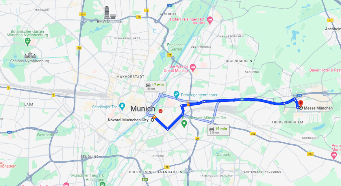 - ترانسفر نمایشگاه با اتومبیل اختصاصی فقط برای مسافرین هتل شهر مونیخ و فقط در ساعت تعیین شده است.